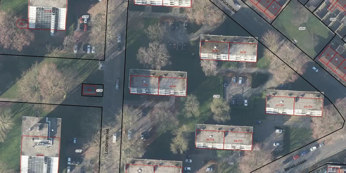 Londenstraat 93 is gelegen op kadastraal perceel LNK00H3798. Deze kadastrale aanduiding is uniek en wordt gebruikt door het Kadaster om eigendomsrechten en andere zakelijke rechten vast te leggen. Het perceel maakt onderdeel uit van de kadastrale gemeente Lonneker.