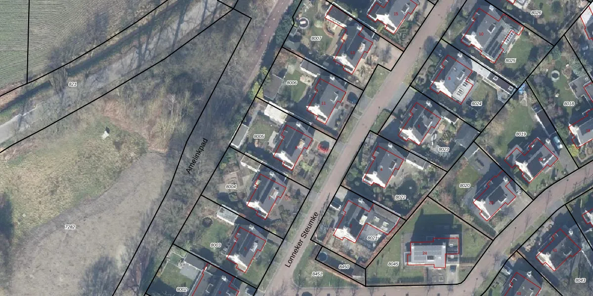 Lonneker Steumke 9 is gelegen op kadastraal perceel LNK00C8005. Deze kadastrale aanduiding is uniek en wordt gebruikt door het Kadaster om eigendomsrechten en andere zakelijke rechten vast te leggen. Het perceel maakt onderdeel uit van de kadastrale gemeente Lonneker.