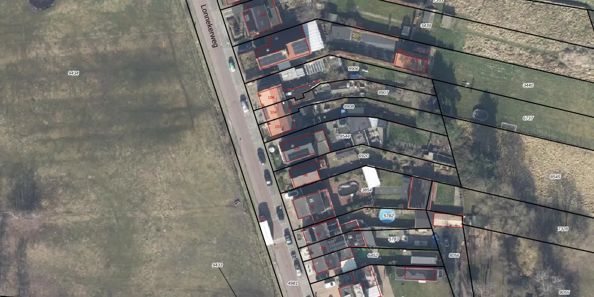 Lonnekerweg 100 is gelegen op kadastraal perceel LNK00E8544. Deze kadastrale aanduiding is uniek en wordt gebruikt door het Kadaster om eigendomsrechten en andere zakelijke rechten vast te leggen. Het perceel maakt onderdeel uit van de kadastrale gemeente Lonneker.