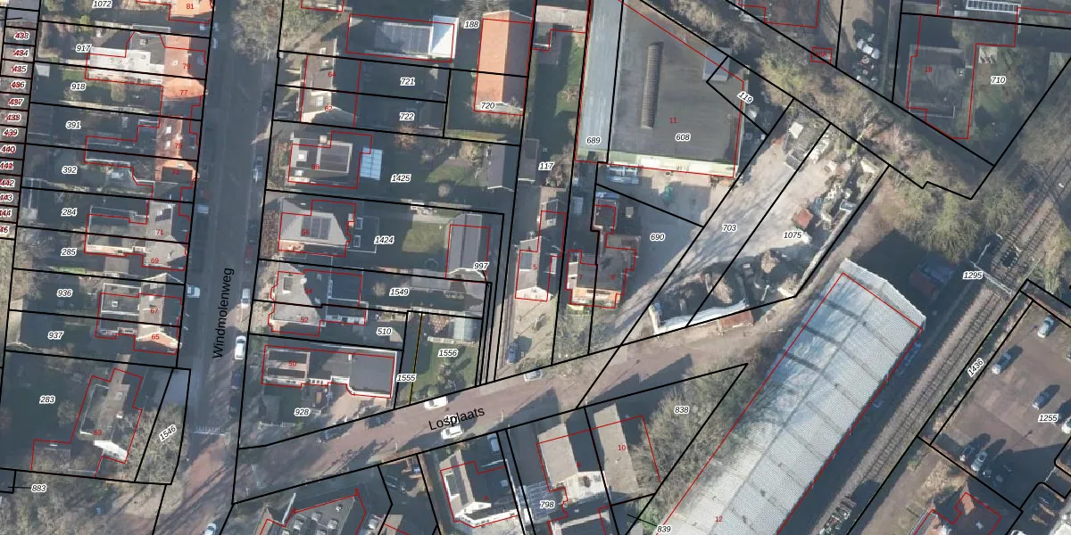Het perceel waarop Losplaats 5 staat heeft een oppervlakte van 801 m². Dit is een groot perceel. De perceeloppervlakte wordt geregistreerd door het Kadaster. Gedetailleerde informatie over de maten van dit perceel kunt u vinden in het rapport Kadastrale kaart met maatvoering van Losplaats 5.