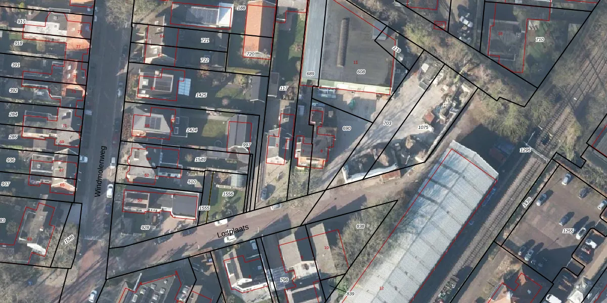 Het perceel waarop Losplaats 7 staat heeft een oppervlakte van 434 m². Dit is een groot perceel. De perceeloppervlakte wordt geregistreerd door het Kadaster. Gedetailleerde informatie over de maten van dit perceel kunt u vinden in het rapport Kadastrale kaart met maatvoering van Losplaats 7.
