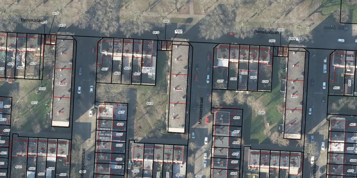 Het perceel waarop Münsterstraat 18 staat heeft een oppervlakte van 481 m². Dit is een groot perceel. De perceeloppervlakte wordt geregistreerd door het Kadaster. Gedetailleerde informatie over de maten van dit perceel kunt u vinden in het rapport Kadastrale kaart met maatvoering van Münsterstraat 18.