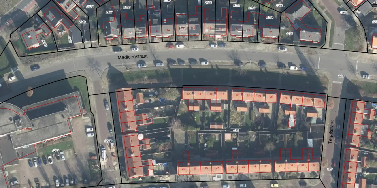 Het perceel waarop Madioenstraat 12 staat heeft een oppervlakte van 5420 m². Dit is een zeer groot perceel. De perceeloppervlakte wordt geregistreerd door het Kadaster. Gedetailleerde informatie over de maten van dit perceel kunt u vinden in het rapport Kadastrale kaart met maatvoering van Madioenstraat 12.