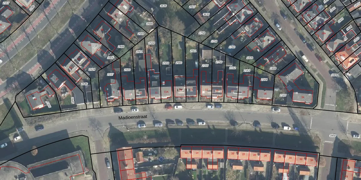 Het perceel waarop Madioenstraat 13 staat heeft een oppervlakte van 278 m². Dit is een middelgroot perceel. De perceeloppervlakte wordt geregistreerd door het Kadaster. Gedetailleerde informatie over de maten van dit perceel kunt u vinden in het rapport Kadastrale kaart met maatvoering van Madioenstraat 13.