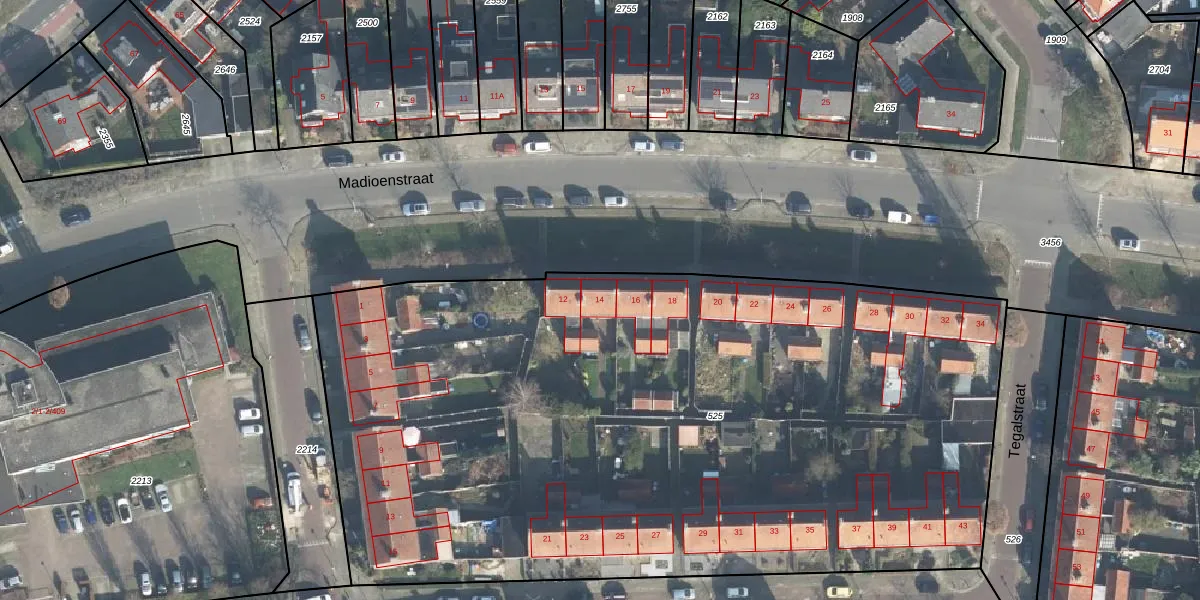 Het perceel waarop Madioenstraat 14 staat heeft een oppervlakte van 5420 m². Dit is een zeer groot perceel. De perceeloppervlakte wordt geregistreerd door het Kadaster. Gedetailleerde informatie over de maten van dit perceel kunt u vinden in het rapport Kadastrale kaart met maatvoering van Madioenstraat 14.
