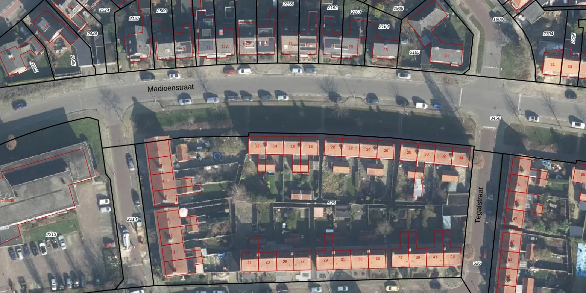 Het perceel waarop Madioenstraat 16 staat heeft een oppervlakte van 5420 m². Dit is een zeer groot perceel. De perceeloppervlakte wordt geregistreerd door het Kadaster. Gedetailleerde informatie over de maten van dit perceel kunt u vinden in het rapport Kadastrale kaart met maatvoering van Madioenstraat 16.