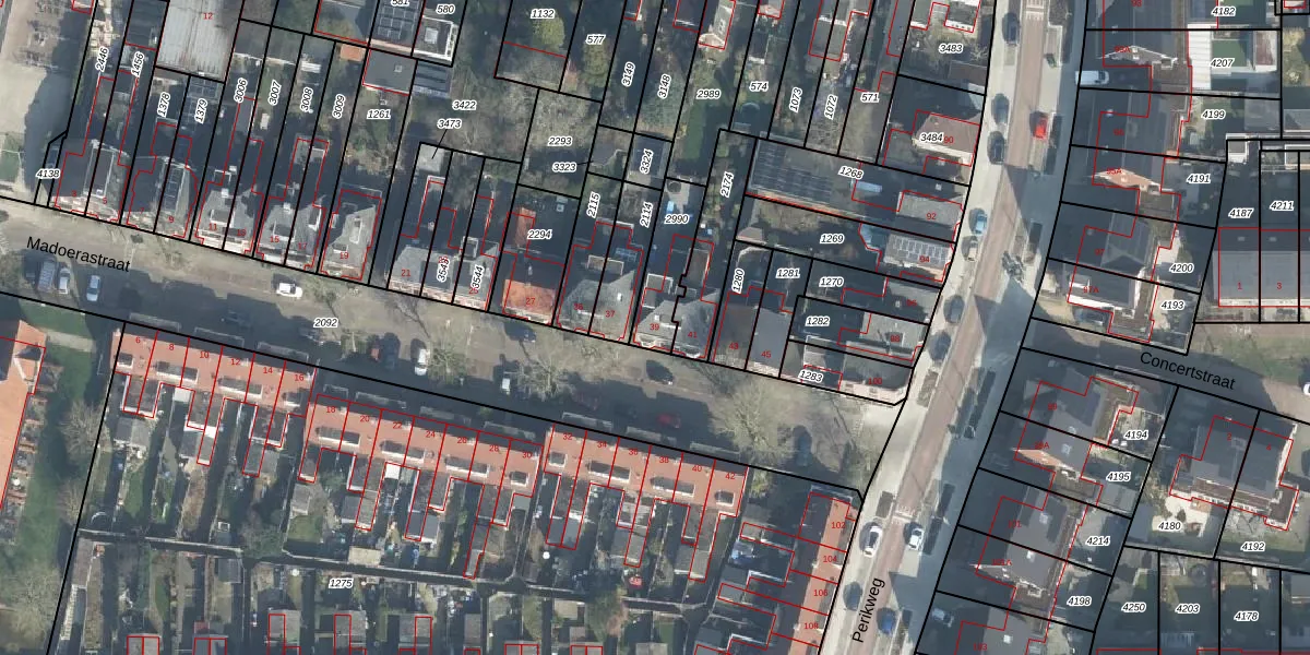 Het perceel waarop Madoerastraat 39 staat heeft een oppervlakte van 160 m². Dit is een middelgroot perceel. De perceeloppervlakte wordt geregistreerd door het Kadaster. Gedetailleerde informatie over de maten van dit perceel kunt u vinden in het rapport Kadastrale kaart met maatvoering van Madoerastraat 39.