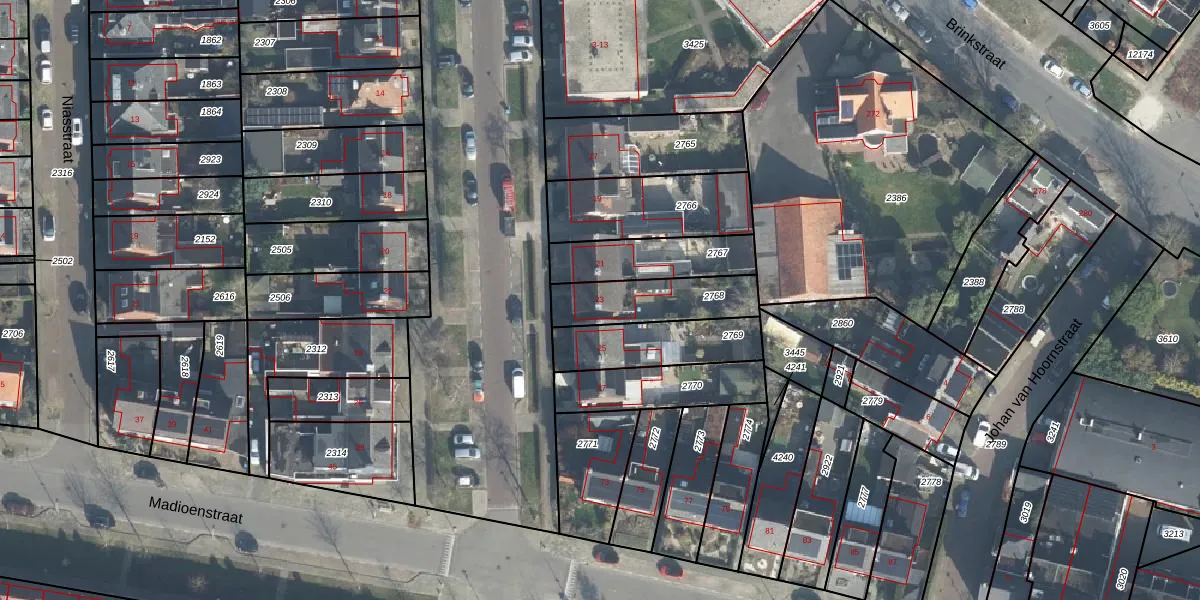 Gebruik de zoekbalk of klik op een perceel voor informatie over de adressen binnen dit perceel.