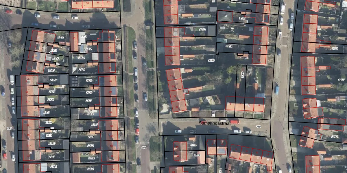 Het perceel waarop Malangstraat 59 staat heeft een oppervlakte van 4510 m². Dit is een zeer groot perceel. De perceeloppervlakte wordt geregistreerd door het Kadaster. Gedetailleerde informatie over de maten van dit perceel kunt u vinden in het rapport Kadastrale kaart met maatvoering van Malangstraat 59.