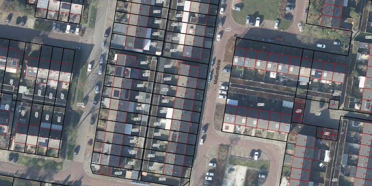 Gebruik de zoekbalk of klik op een perceel voor informatie over de adressen binnen dit perceel.