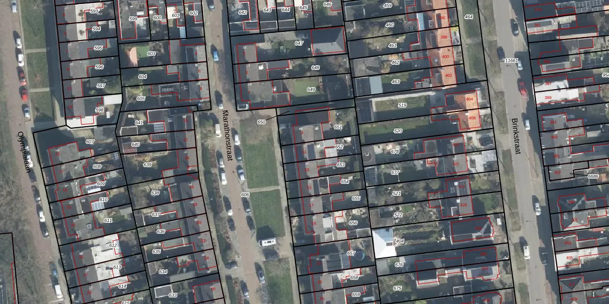 Gebruik de zoekbalk of klik op een perceel voor informatie over de adressen binnen dit perceel.