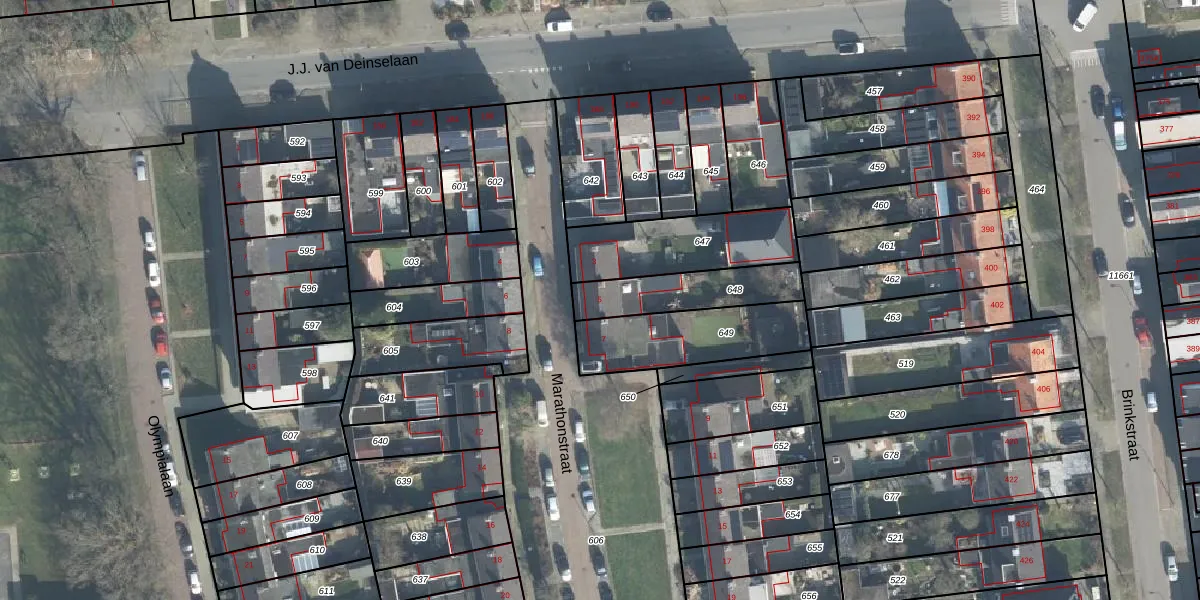Marathonstraat 5 is gelegen op kadastraal perceel LNK00P648. Deze kadastrale aanduiding is uniek en wordt gebruikt door het Kadaster om eigendomsrechten en andere zakelijke rechten vast te leggen. Het perceel maakt onderdeel uit van de kadastrale gemeente Lonneker.