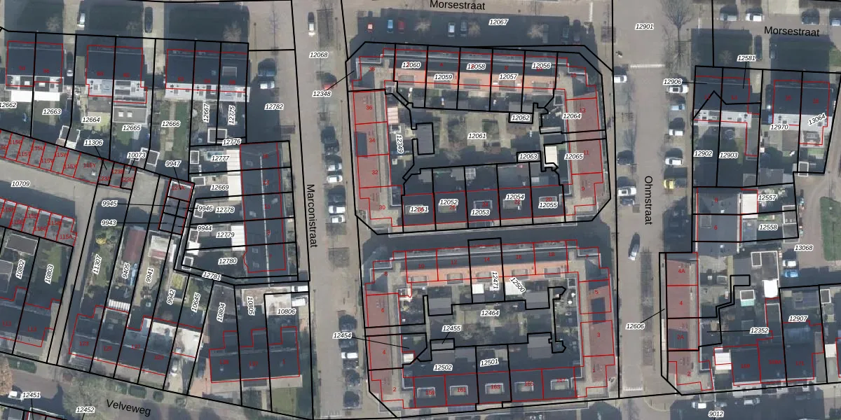 Gebruik de zoekbalk of klik op een perceel voor informatie over de adressen binnen dit perceel.