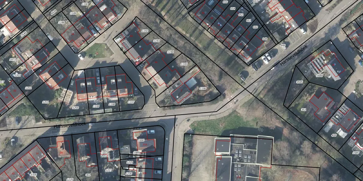 Gebruik de zoekbalk of klik op een perceel voor informatie over de adressen binnen dit perceel.