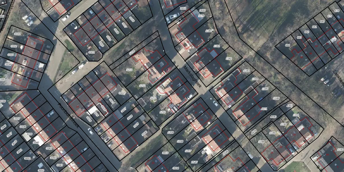 Gebruik de zoekbalk of klik op een perceel voor informatie over de adressen binnen dit perceel.