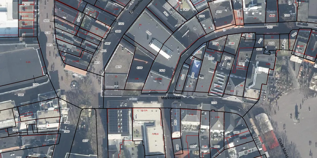 Het perceel waarop Marktstraat 10 staat heeft een oppervlakte van 746 m². Dit is een groot perceel. De perceeloppervlakte wordt geregistreerd door het Kadaster. Gedetailleerde informatie over de maten van dit perceel kunt u vinden in het rapport Kadastrale kaart met maatvoering van Marktstraat 10.