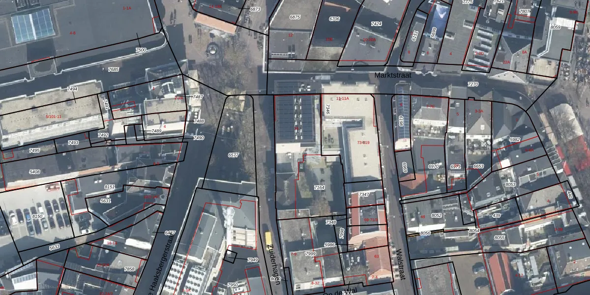 Het perceel waarop Marktstraat 13-1 staat heeft een oppervlakte van 815 m². Dit is een groot perceel. De perceeloppervlakte wordt geregistreerd door het Kadaster. Gedetailleerde informatie over de maten van dit perceel kunt u vinden in het rapport Kadastrale kaart met maatvoering van Marktstraat 13-1.