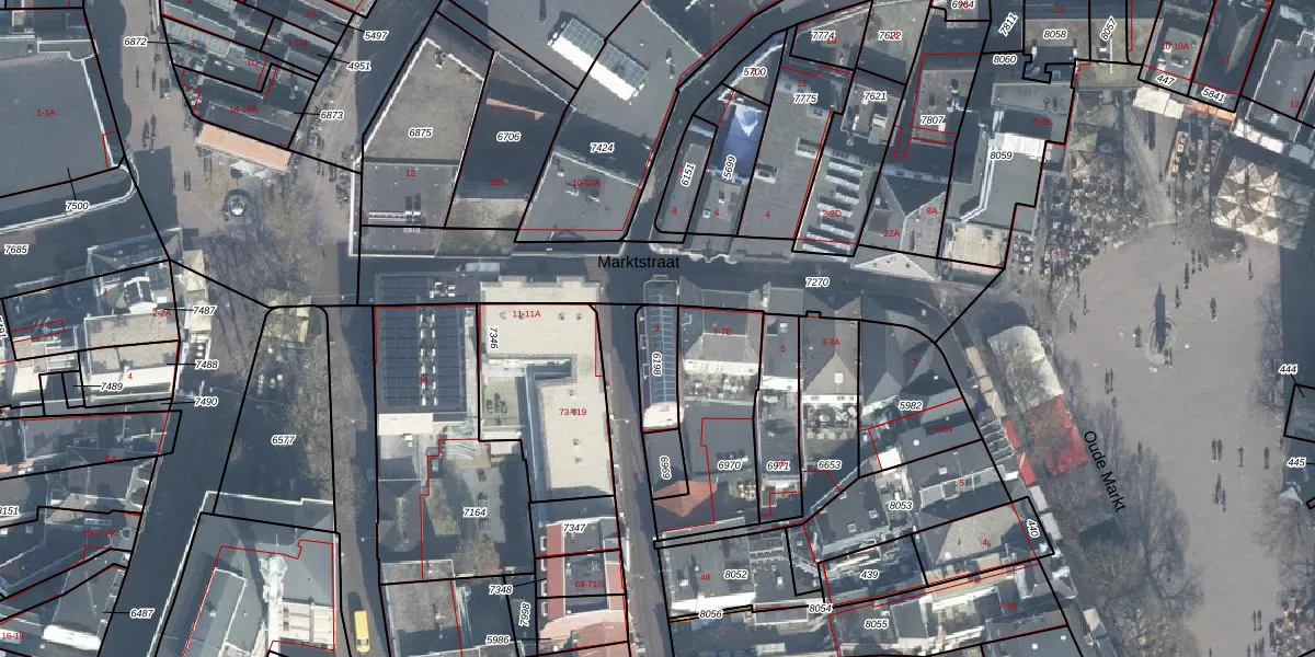 Het perceel waarop Marktstraat 9 staat heeft een oppervlakte van 115 m². Dit is een middelgroot perceel. De perceeloppervlakte wordt geregistreerd door het Kadaster. Gedetailleerde informatie over de maten van dit perceel kunt u vinden in het rapport Kadastrale kaart met maatvoering van Marktstraat 9.