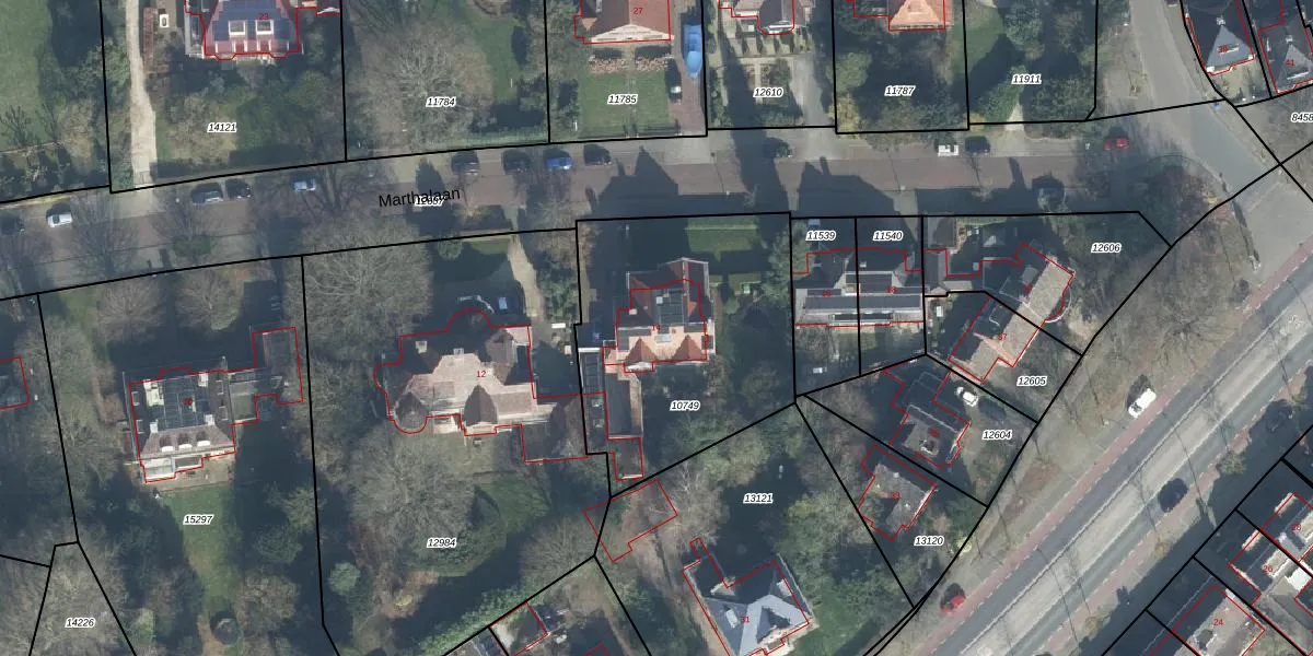 Het perceel waarop Marthalaan 14 staat heeft een oppervlakte van 1173 m². Dit is een zeer groot perceel. De perceeloppervlakte wordt geregistreerd door het Kadaster. Gedetailleerde informatie over de maten van dit perceel kunt u vinden in het rapport Kadastrale kaart met maatvoering van Marthalaan 14.