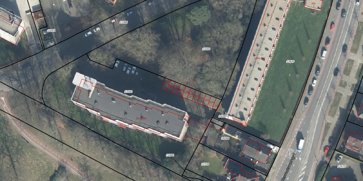 Het perceel waarop het adres ligt is ESD00-D-13182. De afkorting 'ESD00' staat voor kadastrale gemeente Enschede. De oppervlakte van het perceel is 3615 m². Dat is groter dan gemiddeld in Enschede, waar de gemiddelde perceeloppervlakte op 548,14 m² ligt. Het grootste perceel in de kadastrale gemeente is 10,7 ha. Het kleinste perceel heeft een oppervlakte van 0 m². Op het perceel liggen in totaal 68 adressen. In de Basisregistratie Kadaster (BRK) werden de grenzen van het perceel geregistreerd op 02-10-2000.