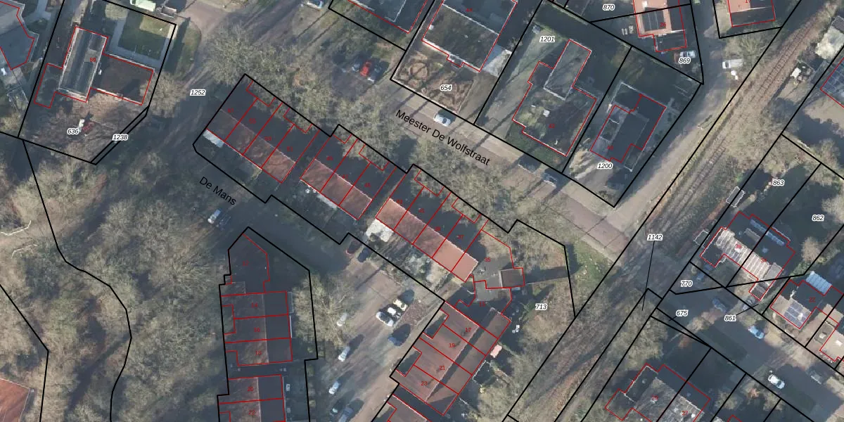 Het perceel waarop Meester De Wolfstraat 41 staat heeft een oppervlakte van 4092 m². Dit is een zeer groot perceel. De perceeloppervlakte wordt geregistreerd door het Kadaster. Gedetailleerde informatie over de maten van dit perceel kunt u vinden in het rapport Kadastrale kaart met maatvoering van Meester De Wolfstraat 41.