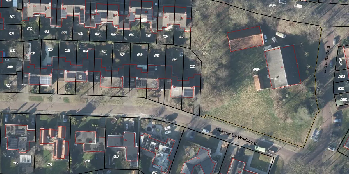 Het perceel waarop Meester De Wolfstraat 72 staat heeft een oppervlakte van 363 m². Dit is een groot perceel. De perceeloppervlakte wordt geregistreerd door het Kadaster. Gedetailleerde informatie over de maten van dit perceel kunt u vinden in het rapport Kadastrale kaart met maatvoering van Meester De Wolfstraat 72.