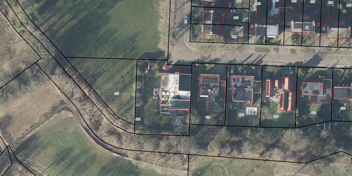Het perceel waarop Meester De Wolfstraat 75 staat heeft een oppervlakte van 1288 m². Dit is een zeer groot perceel. De perceeloppervlakte wordt geregistreerd door het Kadaster. Gedetailleerde informatie over de maten van dit perceel kunt u vinden in het rapport Kadastrale kaart met maatvoering van Meester De Wolfstraat 75.