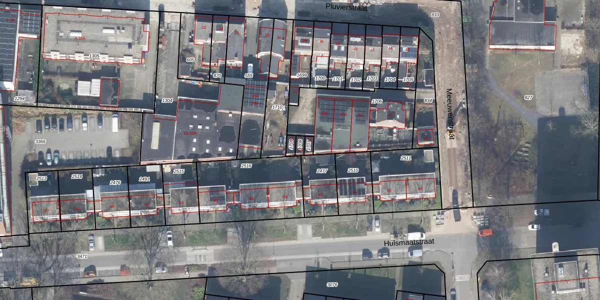 Het perceel waarop Meeuwenstraat 33 staat heeft een oppervlakte van 20 m². Dit is een klein perceel. De perceeloppervlakte wordt geregistreerd door het Kadaster. Gedetailleerde informatie over de maten van dit perceel kunt u vinden in het rapport Kadastrale kaart met maatvoering van Meeuwenstraat 33.