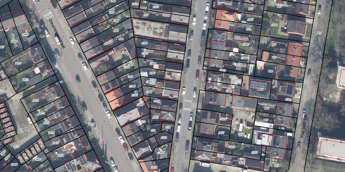 Gebruik de zoekbalk of klik op een perceel voor informatie over de adressen binnen dit perceel.
