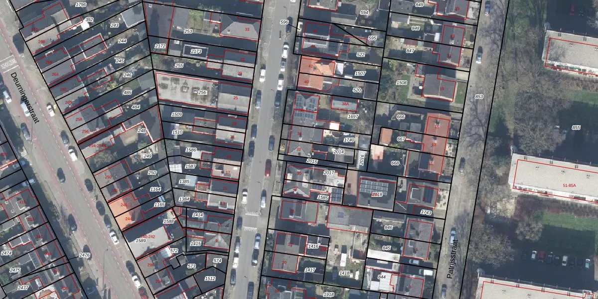 Gebruik de zoekbalk of klik op een perceel voor informatie over de adressen binnen dit perceel.