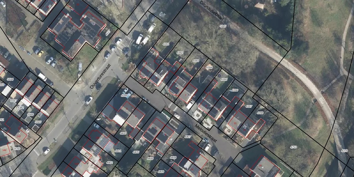 Melodiestraat 5 is gelegen op kadastraal perceel LNK00F4393. Deze kadastrale aanduiding is uniek en wordt gebruikt door het Kadaster om eigendomsrechten en andere zakelijke rechten vast te leggen. Het perceel maakt onderdeel uit van de kadastrale gemeente Lonneker.