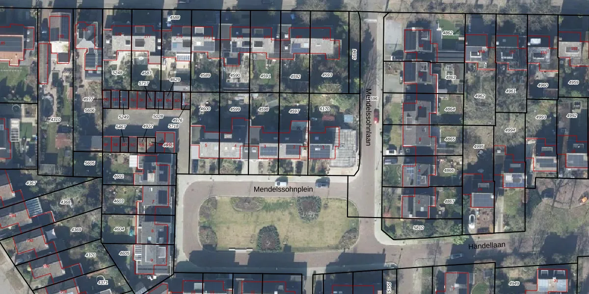 Het perceel waarop Mendelssohnplein 2 staat heeft een oppervlakte van 279 m². Dit is een middelgroot perceel. De perceeloppervlakte wordt geregistreerd door het Kadaster. Gedetailleerde informatie over de maten van dit perceel kunt u vinden in het rapport Kadastrale kaart met maatvoering van Mendelssohnplein 2.