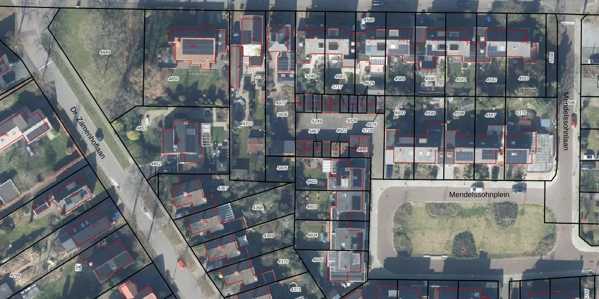 Het perceel waarop Mendelssohnplein 5-F staat heeft een oppervlakte van 480 m². Dit is een groot perceel. De perceeloppervlakte wordt geregistreerd door het Kadaster. Gedetailleerde informatie over de maten van dit perceel kunt u vinden in het rapport Kadastrale kaart met maatvoering van Mendelssohnplein 5-F.