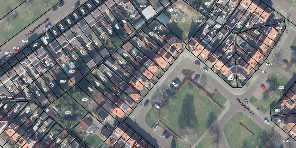 Het perceel waarop Mercuriusplein 24 staat heeft een oppervlakte van 169 m². Dit is een middelgroot perceel. De perceeloppervlakte wordt geregistreerd door het Kadaster. Gedetailleerde informatie over de maten van dit perceel kunt u vinden in het rapport Kadastrale kaart met maatvoering van Mercuriusplein 24.