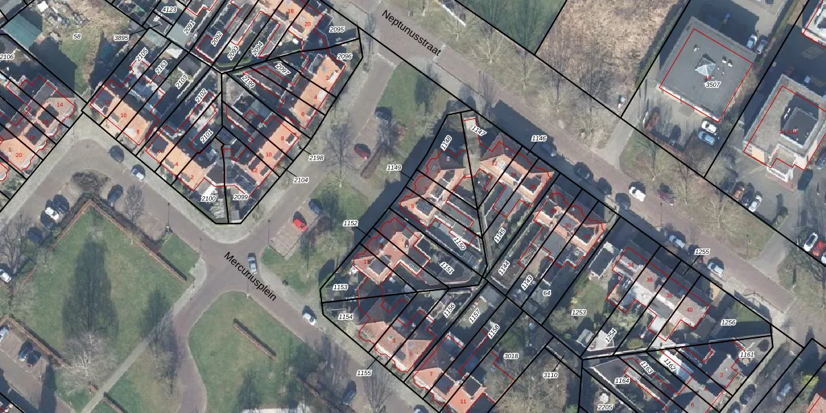 Het perceel waarop Mercuriusstraat 5 staat heeft een oppervlakte van 180 m². Dit is een middelgroot perceel. De perceeloppervlakte wordt geregistreerd door het Kadaster. Gedetailleerde informatie over de maten van dit perceel kunt u vinden in het rapport Kadastrale kaart met maatvoering van Mercuriusstraat 5.