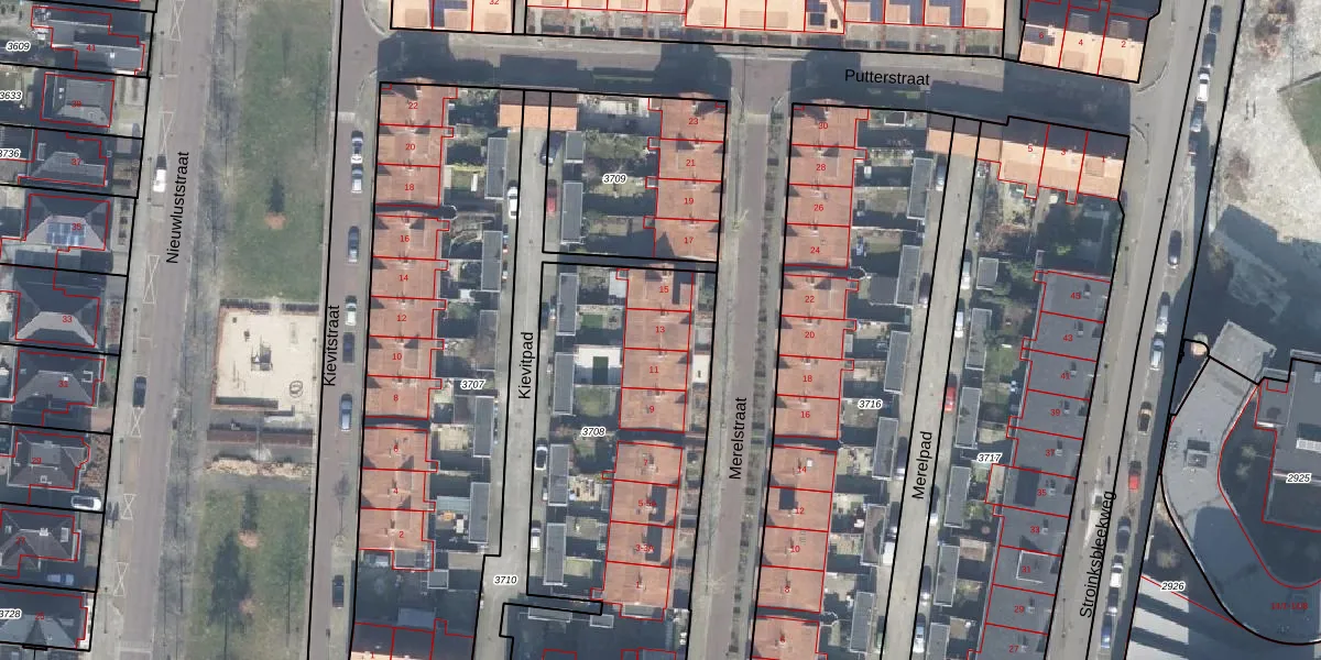 Het perceel waarop Merelstraat 13 staat heeft een oppervlakte van 1790 m². Dit is een zeer groot perceel. De perceeloppervlakte wordt geregistreerd door het Kadaster. Gedetailleerde informatie over de maten van dit perceel kunt u vinden in het rapport Kadastrale kaart met maatvoering van Merelstraat 13.