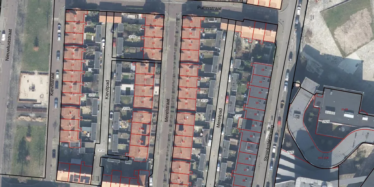 Het perceel waarop Merelstraat 18 staat heeft een oppervlakte van 2059 m². Dit is een zeer groot perceel. De perceeloppervlakte wordt geregistreerd door het Kadaster. Gedetailleerde informatie over de maten van dit perceel kunt u vinden in het rapport Kadastrale kaart met maatvoering van Merelstraat 18.