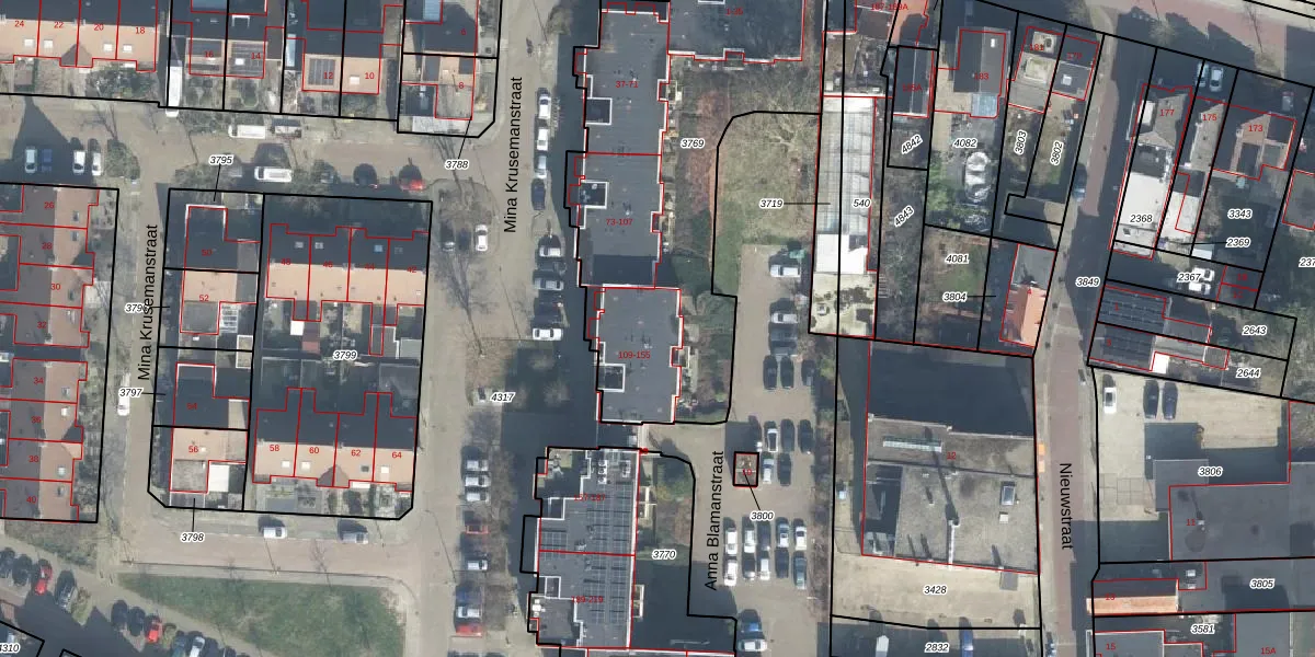 Het perceel waarop Mina Krusemanstraat 109 staat heeft een oppervlakte van 1733 m². Dit is een zeer groot perceel. De perceeloppervlakte wordt geregistreerd door het Kadaster. Gedetailleerde informatie over de maten van dit perceel kunt u vinden in het rapport Kadastrale kaart met maatvoering van Mina Krusemanstraat 109.
