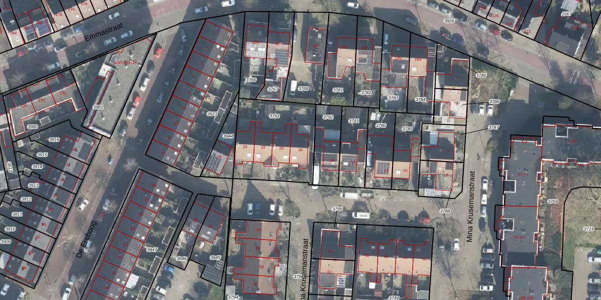 Het perceel waarop Mina Krusemanstraat 18 staat heeft een oppervlakte van 688 m². Dit is een groot perceel. De perceeloppervlakte wordt geregistreerd door het Kadaster. Gedetailleerde informatie over de maten van dit perceel kunt u vinden in het rapport Kadastrale kaart met maatvoering van Mina Krusemanstraat 18.