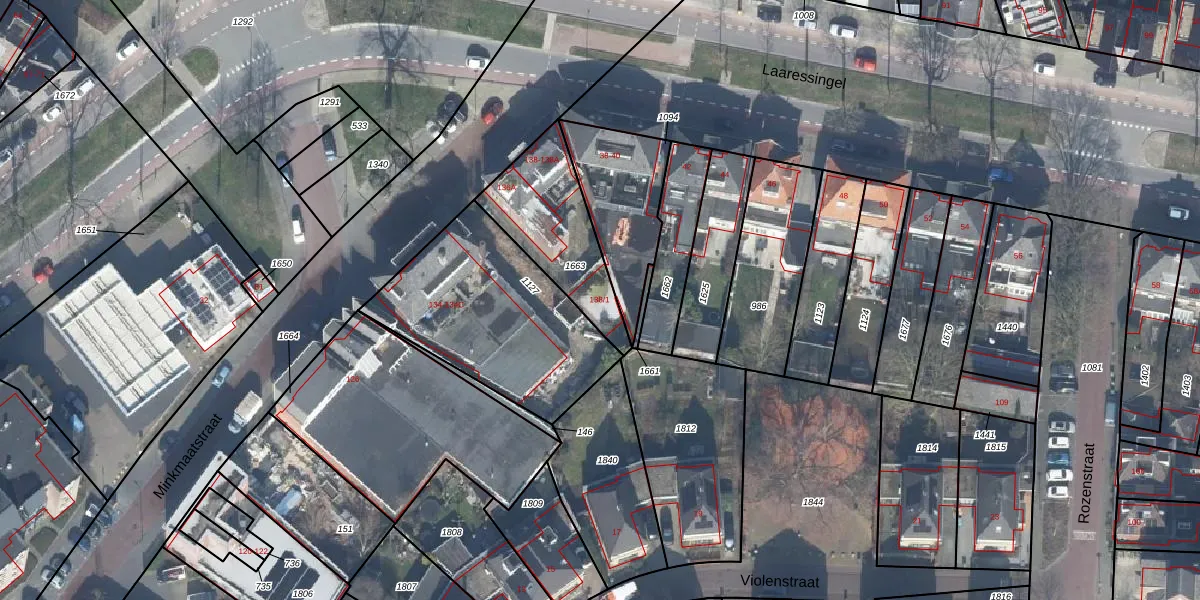 Het perceel waarop Minkmaatstraat 138-1 staat heeft een oppervlakte van 385 m². Dit is een groot perceel. De perceeloppervlakte wordt geregistreerd door het Kadaster. Gedetailleerde informatie over de maten van dit perceel kunt u vinden in het rapport Kadastrale kaart met maatvoering van Minkmaatstraat 138-1.