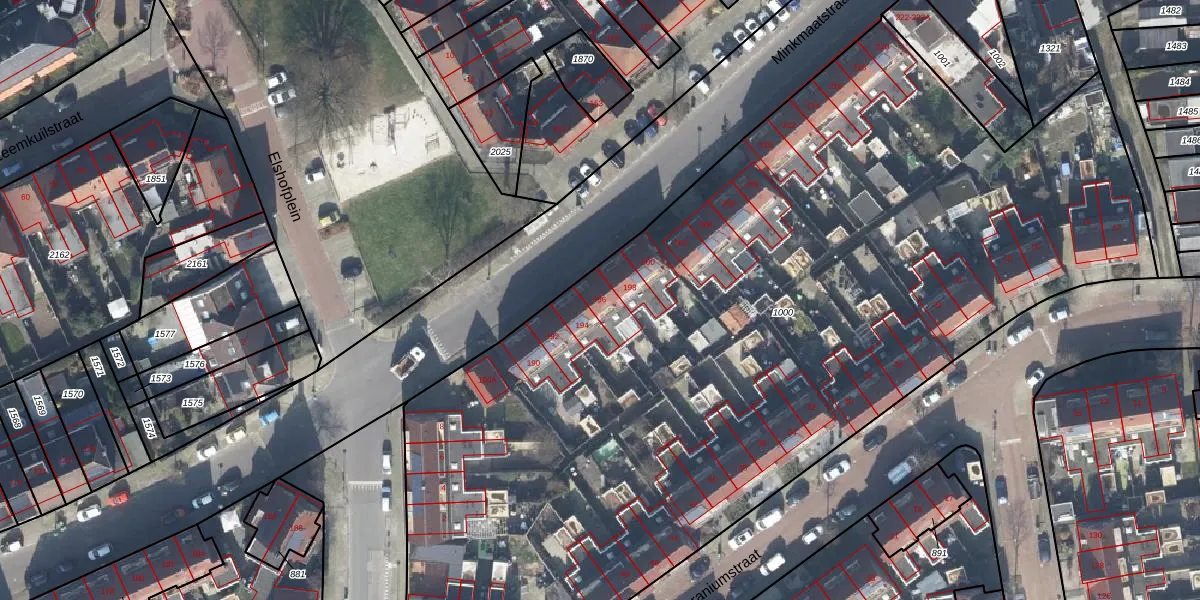Het perceel waarop Minkmaatstraat 196 staat heeft een oppervlakte van 6433 m². Dit is een zeer groot perceel. De perceeloppervlakte wordt geregistreerd door het Kadaster. Gedetailleerde informatie over de maten van dit perceel kunt u vinden in het rapport Kadastrale kaart met maatvoering van Minkmaatstraat 196.