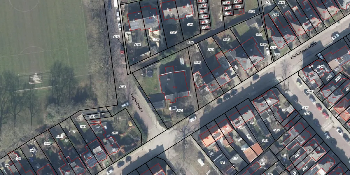 Het perceel waarop Minkmaatstraat 215 staat heeft een oppervlakte van 1006 m². Dit is een zeer groot perceel. De perceeloppervlakte wordt geregistreerd door het Kadaster. Gedetailleerde informatie over de maten van dit perceel kunt u vinden in het rapport Kadastrale kaart met maatvoering van Minkmaatstraat 215.