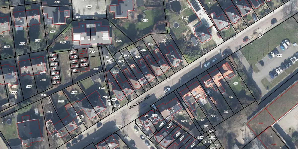 Het perceel waarop Minkmaatstraat 235 staat heeft een oppervlakte van 187 m². Dit is een middelgroot perceel. De perceeloppervlakte wordt geregistreerd door het Kadaster. Gedetailleerde informatie over de maten van dit perceel kunt u vinden in het rapport Kadastrale kaart met maatvoering van Minkmaatstraat 235.