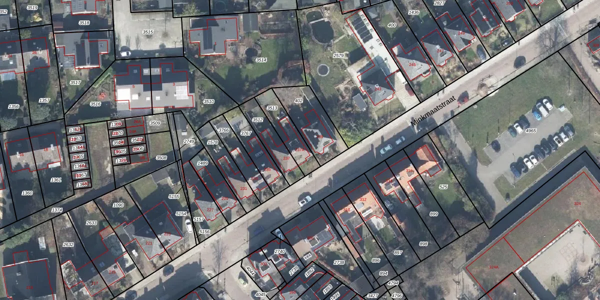 Het perceel waarop Minkmaatstraat 237-A staat heeft een oppervlakte van 189 m². Dit is een middelgroot perceel. De perceeloppervlakte wordt geregistreerd door het Kadaster. Gedetailleerde informatie over de maten van dit perceel kunt u vinden in het rapport Kadastrale kaart met maatvoering van Minkmaatstraat 237-A.