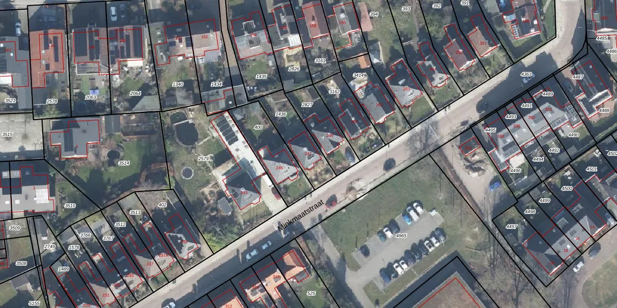 Het perceel waarop Minkmaatstraat 247 staat heeft een oppervlakte van 403 m². Dit is een groot perceel. De perceeloppervlakte wordt geregistreerd door het Kadaster. Gedetailleerde informatie over de maten van dit perceel kunt u vinden in het rapport Kadastrale kaart met maatvoering van Minkmaatstraat 247.