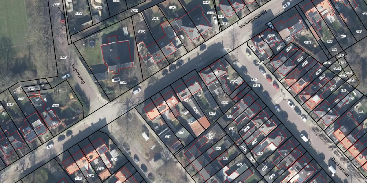Het perceel waarop Minkmaatstraat 292 staat heeft een oppervlakte van 196 m². Dit is een middelgroot perceel. De perceeloppervlakte wordt geregistreerd door het Kadaster. Gedetailleerde informatie over de maten van dit perceel kunt u vinden in het rapport Kadastrale kaart met maatvoering van Minkmaatstraat 292.