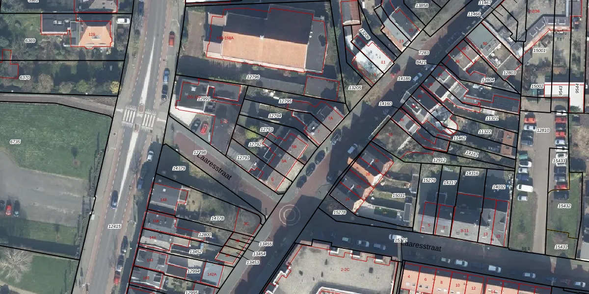 Gebruik de zoekbalk of klik op een perceel voor informatie over de adressen binnen dit perceel.