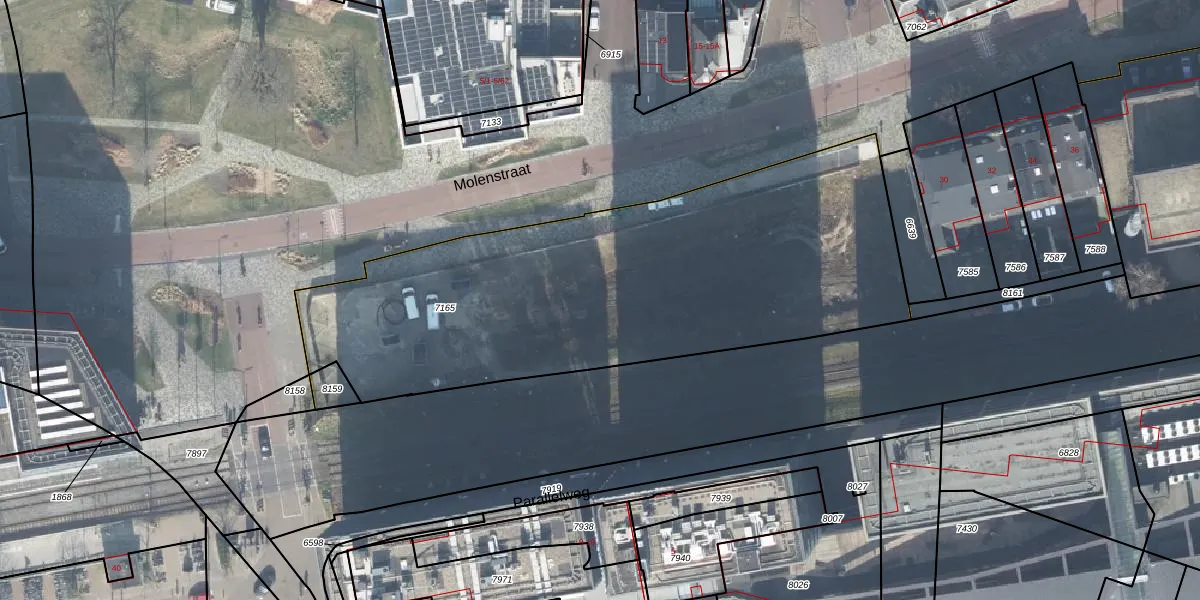 Het perceel waarop Molenstraat 12-301 staat heeft een oppervlakte van 2535 m². Dit is een zeer groot perceel. De perceeloppervlakte wordt geregistreerd door het Kadaster. Gedetailleerde informatie over de maten van dit perceel kunt u vinden in het rapport Kadastrale kaart met maatvoering van Molenstraat 12-301.