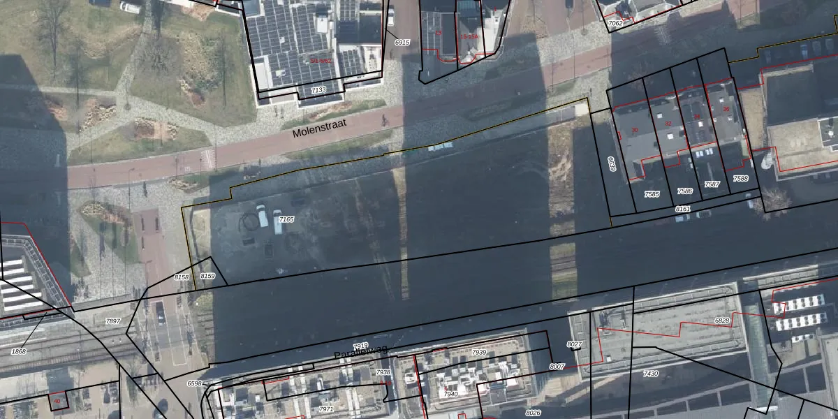 Het perceel waarop Molenstraat 12-302 staat heeft een oppervlakte van 2535 m². Dit is een zeer groot perceel. De perceeloppervlakte wordt geregistreerd door het Kadaster. Gedetailleerde informatie over de maten van dit perceel kunt u vinden in het rapport Kadastrale kaart met maatvoering van Molenstraat 12-302.