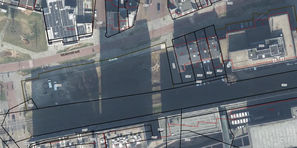 Het perceel waarop Molenstraat 12-307 staat heeft een oppervlakte van 2535 m². Dit is een zeer groot perceel. De perceeloppervlakte wordt geregistreerd door het Kadaster. Gedetailleerde informatie over de maten van dit perceel kunt u vinden in het rapport Kadastrale kaart met maatvoering van Molenstraat 12-307.